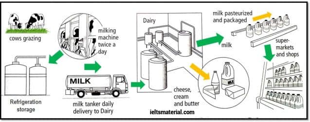 2️⃣ The process of cheese production begins with fresh milk being pasteurized to eliminate bacteria. Then, enzymes are added to the milk, causing it to coagulate into curds. These curds are separated from the whey, pressed into molds, and aged under controlled conditions before packaging and distribution. — Процесс производства сыра начинается с пастеризации свежего молока для уничтожения бактерий. Затем в молоко добавляют ферменты, которые превращают его в творог. Этот творог отделяют от сыворотки, прессуют в формы и выдерживают в контролируемых условиях перед упаковкой и распределением.