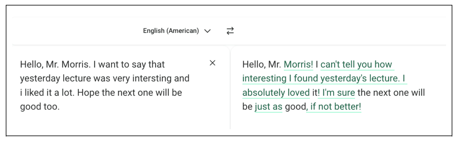 Это сервис для тех, кто уже владеет английским, потому что вам самим придётся выбрать, какой из вариантов подходит. Например, иногда сервис перебарщивает с формальностью и предлагает странные варианты, например заменить «I’m looking forward for tomorrow» на «tomorrow is being looked forward on by me». Но если вы знаете? что делаете, DeepL поможет вам выйти из ужасного состояния писательского ступора.