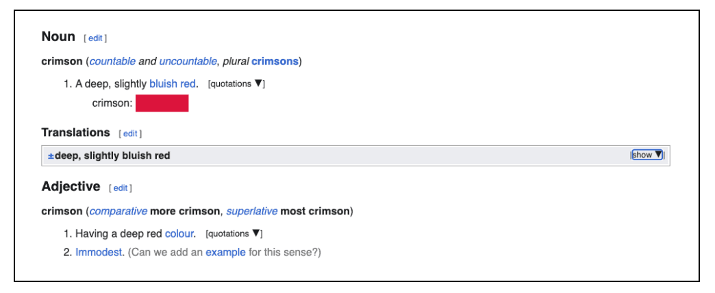 Словарь, созданный по тому же принципу, что и Wikipedia: статьи редактируют пользователи со всего мира. В остальном содержание статей очень похоже на то, что есть в классических словарях: определение, этимология, синонимы и прочее.