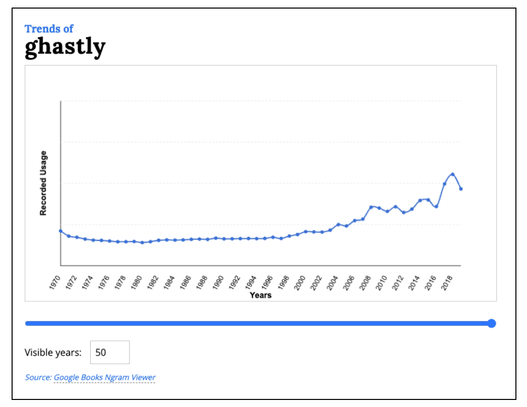 Кроме того, Collins показывает, как менялась популярность слова в литературе с годами — для этого словарь использует данные из Google Books.